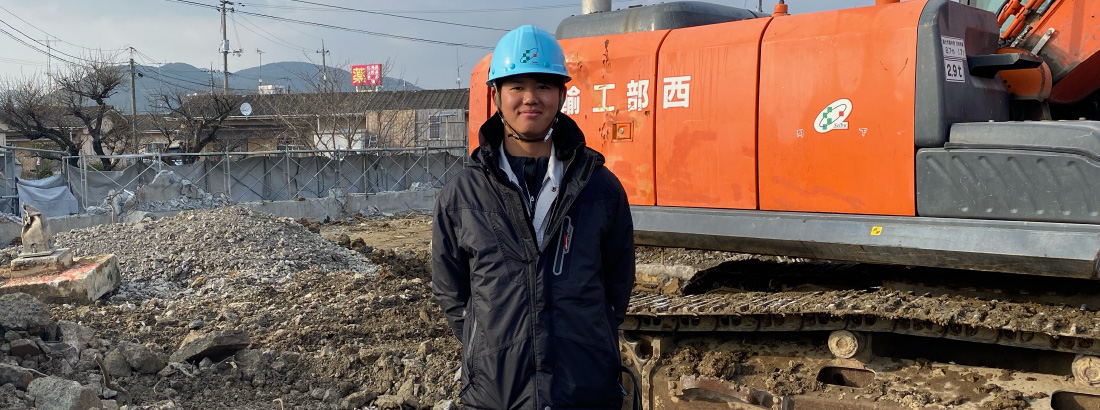 入社するまで建設業はモノを作るというイメージが先行していましたが、作るまでに古い建物を壊す、壊し方も工夫をしながら解体し、次の工事取り掛かりやすいような状態にする。という過程があることに気づきました。 そのように、普段は見ることのできない流れを体感することができるのも西部工輸の魅力だと思います。先輩社員インタビュー