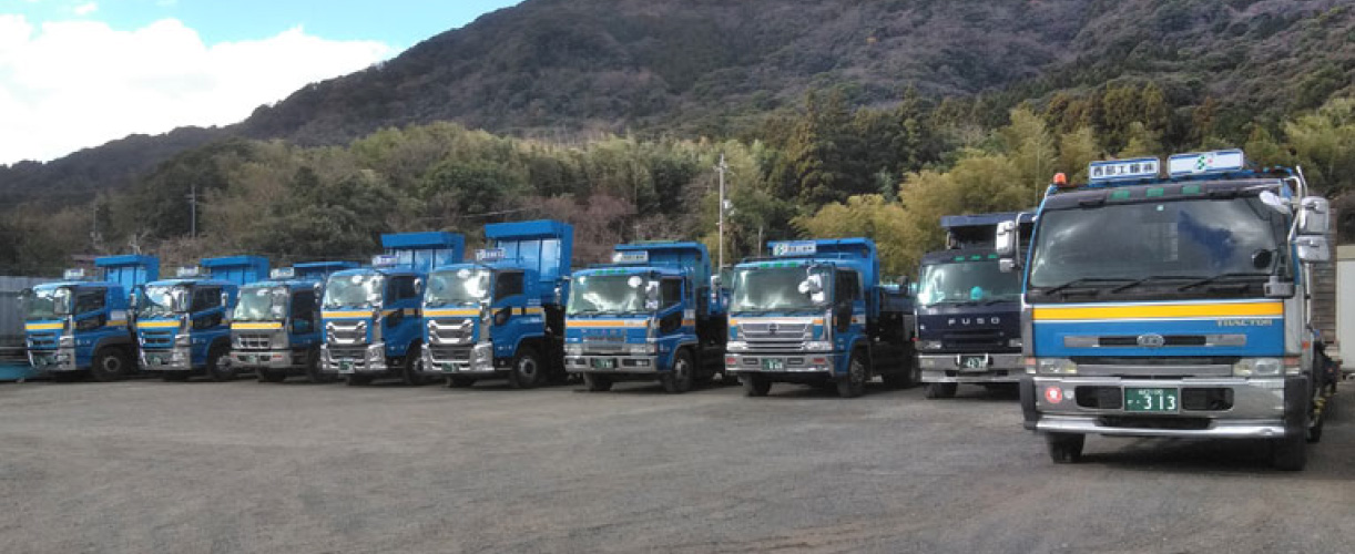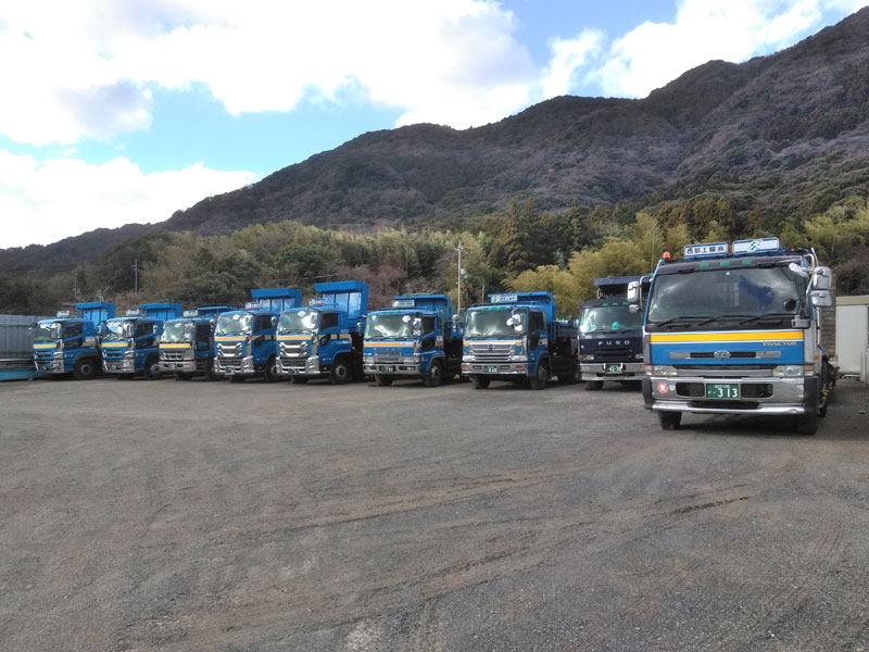 トレーラー … 1台 10tダンプ … 7台 10t台車 … 2台 6tユニック … 2台 4tユニック … 1台 4tダンプ … 1台 4tフックロール … 2台 4tローリー … 1台 高圧散水車 … 1台